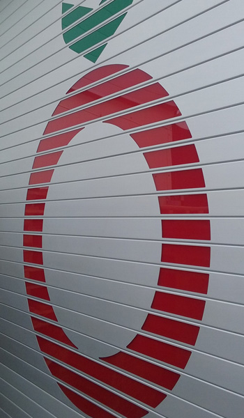 Rideaux métallique modèle MASTER DEKORA dans les installations de la ferme de tomate Jacquenoud en Lully, Suisse.