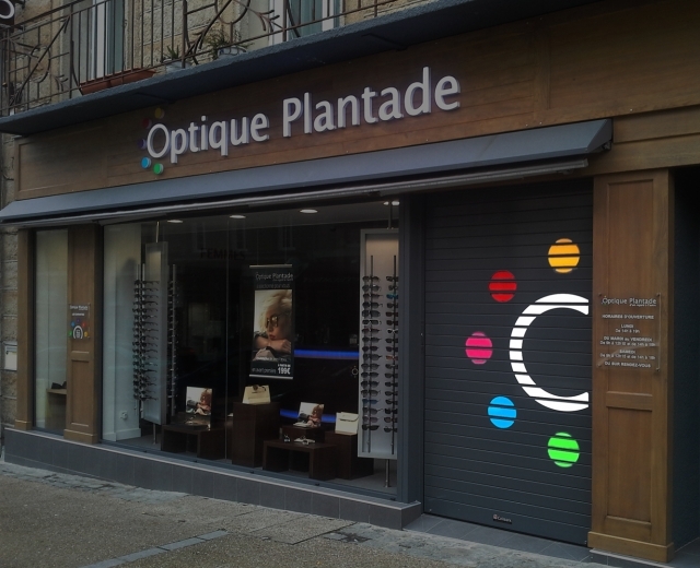 Rolluik model MASTER DEKORA met het logo van het bedrijf, in de stad Avranches (Frankrijk).