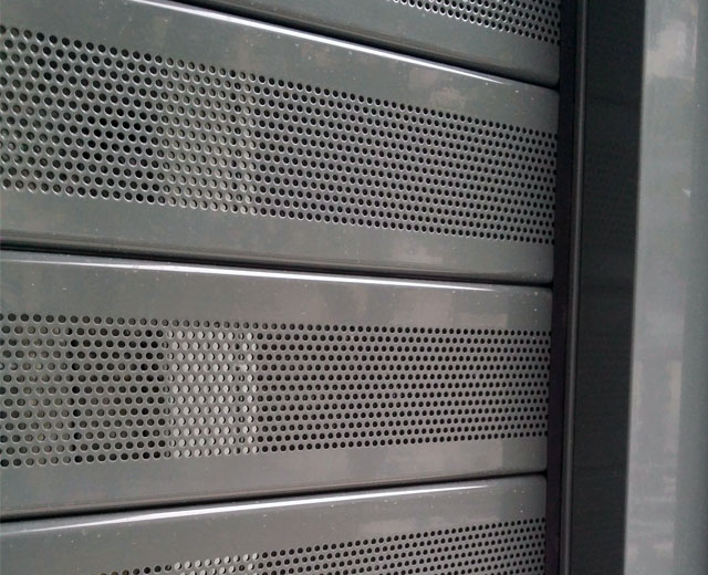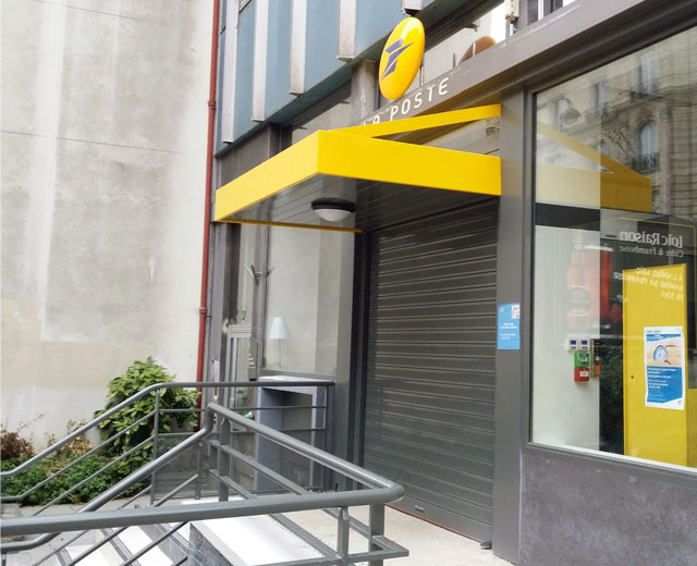 Porte à enroulement modèle MICROBAIX en finition Ral 7010, pour un bureau de la Poste à Paris La Muette (France).